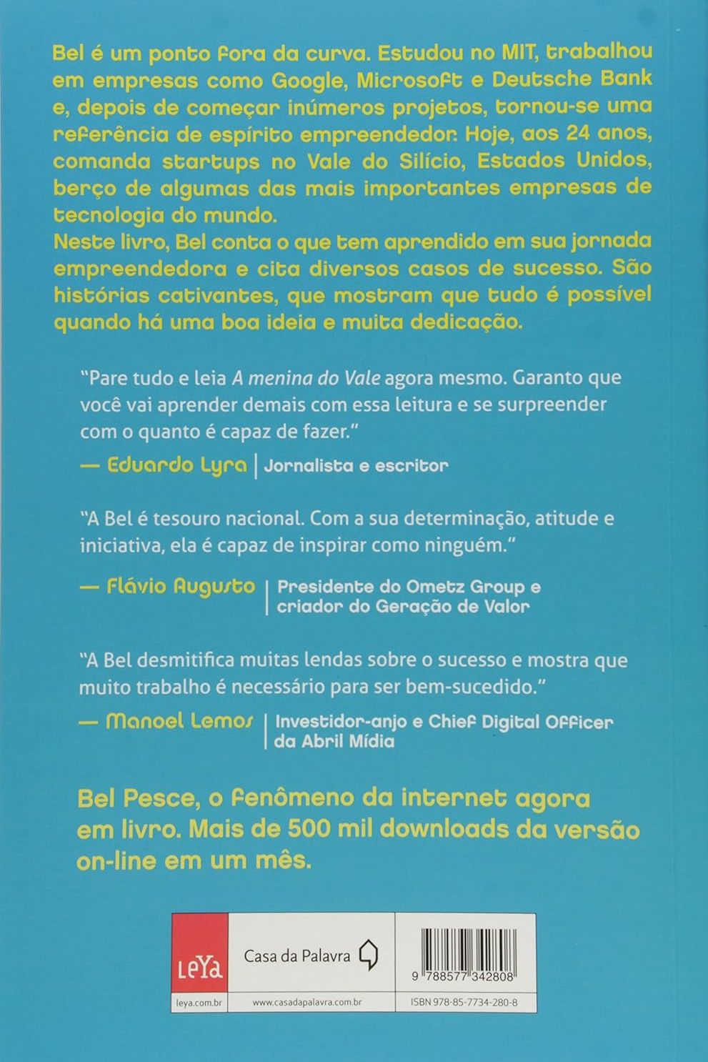 Bel é um ponto fora da curva. Um dos grandes expoentes do empreendedorismo, essa brasileira já trabalhou em empresas como Google, Microsoft e Deutsche Bank. Tudo isso antes dos 20 anos! Hoje, aos 24 anos, comanda sua própria empresa: a startup Lemon, sediada no Vale do Silício, Estados Unidos, berço de algumas das mais importantes empresas de tecnologia do mundo. Este livro revela ensinamentos que Bel aprendeu em sua aventura empreendedora e apresenta casos de sucesso que mostram que tudo é possível quando há uma boa ideia e muita dedicação. (extraído de Google Books)