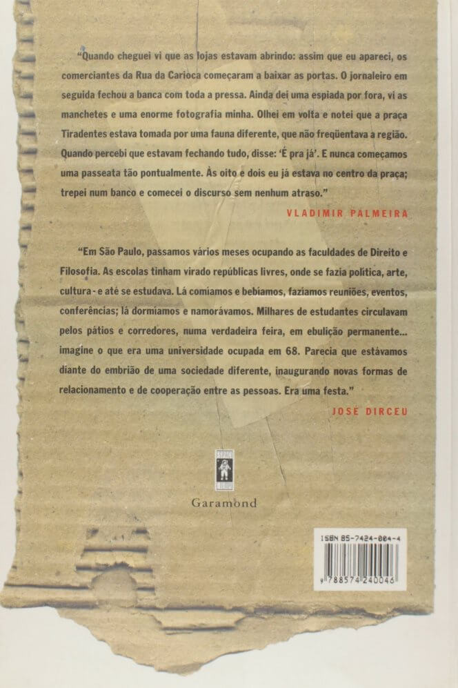Na contramão da tradição brasileira, a ditadura militar de 1964 era sanguinária e assassina. Os militares brasileiros foram alunos criativos dos programas de Fort Bragg; jamais cometeram os excessos dos seus colegas argentinos ou chilenos, mas dizimaram as oposições com requintes de crueldade. Contra os jovens rebeldes, ainda meio adolescentes, sem preparação militar ou com treinamento precário, os gorilas brasileiros usaram um arsenal que teria assombrado um militante do IRA ou Al Fatah. Este foi o tratamento a que os militares submeteram os meus amigos José Dirceu e Vladimir Palmeira, que em boa hora decidiram contar este período, para o conhecimento das gerações de hoje e do futuro. Dirceu e Vladimir são homens inteligentes e observam seus passados com uma saudável ironia, cada um deles preservando seus próprios estilos. Dirceu retorna ao passado com sua alma passional, seu espírito instintivo e pouco teórico. Vladimir, mais lido e repleto de desconfiança nordestina, exercita sua verve radical, seu senso de humor generoso e transbordante. Livros como este servem como testemunho. E servem muito mais para que nosso país jamais sofra a tentação de repetir este passado. (extraído de Amazon)