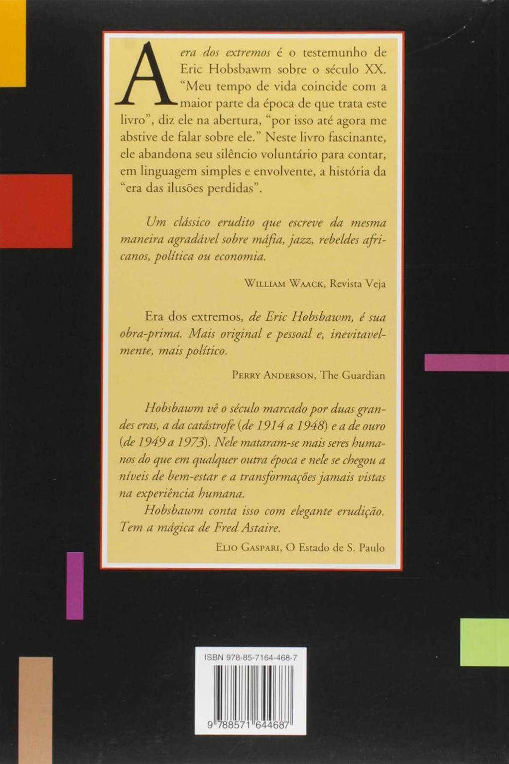 Ensaio histórico panorâmico em que o célebre historiador inglês desenvolve a tese de que o século XX teve início com a eclosão da Primeira Guerra Mundial, em 1914, e terminou com a derrocada da União Soviética, em 1991. Eric Hobsbawm, um dos maiores historiadores da atualidade, dá seu testemunho sobre o século XX: “Meu tempo de vida coincide com a maior parte da época de que trata este livro”, diz ele na abertura, “por isso até agora me abstive de falar sobre ele”. Neste livro fascinante, porém, ele abandona seu silêncio voluntário para contar, em linguagem simples e envolvente, a história da “era das ilusões perdidas”. “Um clássico erudito que escreve da mesma maneira agradável sobre máfia, jazz, rebeldes africanos, política ou economia.” – William Waack, Veja “Era dos extremos, de Eric Hobsbawm, é sua obra-prima. Mais original, mais pessoal e, inevitavelmente, mais político.” – Perry Anderson, The Guardian “Hobsbawm vê o século marcado por duas grandes eras, a da catástrofe (de 1914 a 1948) e a de ouro (de 1949 a 1973). Nele mataram-se mais seres humanos do que em qualquer outra época e nele se chegou a níveis de bem-estar e a transformações jamais vistas na experiência humana. Hobsbawm conta isso com elegante erudição. Tem a mágica de Fred Astaire.” – Elio Gaspari, O Estado de S. Paulo (extraído de Google Books)