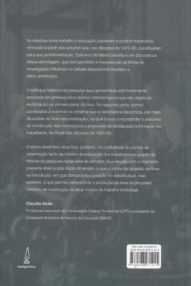 Este livro contém duas partes – a primeira aborda os conceitos para a reconstrução histórica da relação – a história como processo e a história como método, tempo e periodização, as fontes de pesquisa, a fotografia como fonte histórica, e a segunda parte, além de tratar dos conceitos de mediação e particularidade, empreende-se a reconstrução histórica de mediações das políticas educacionais dos anos 1930-60 – o capitalismo e a criação da ‘civilização do trabalho’ no Brasil, a ‘escola do trabalho’, a ideologia de valorização do trabalho, a produtividade do trabalhador e a técnica como um novo humanismo. (extraído de Google Books)