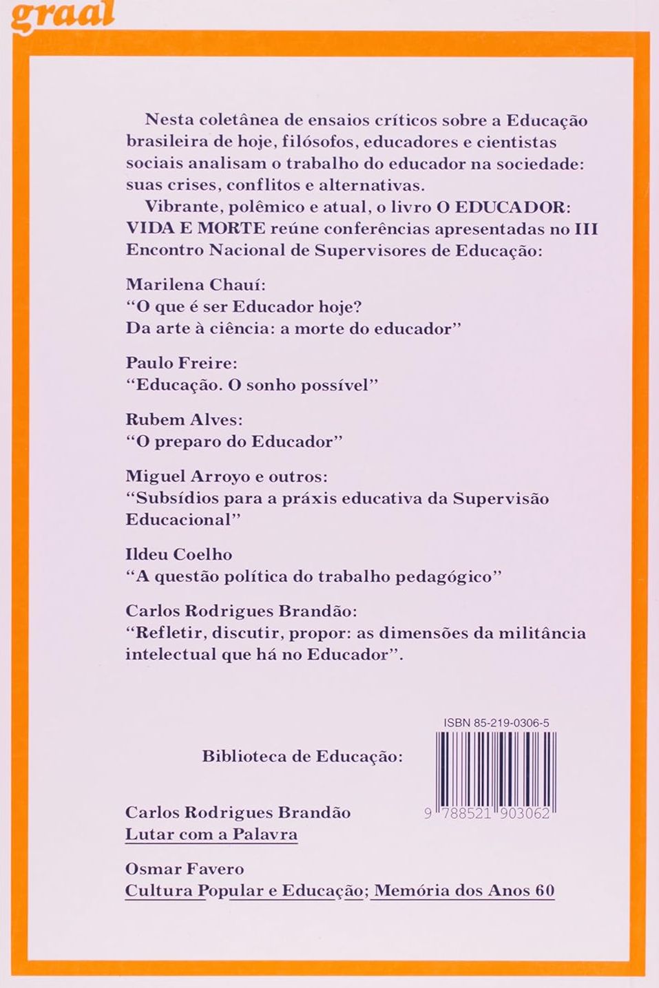 Vibrante, polêmico e atual, o livro O EDUCADOR: VIDA E MORTE reúne conferências apresentadas no III Encontro Nacional de Supervisores de Educação: