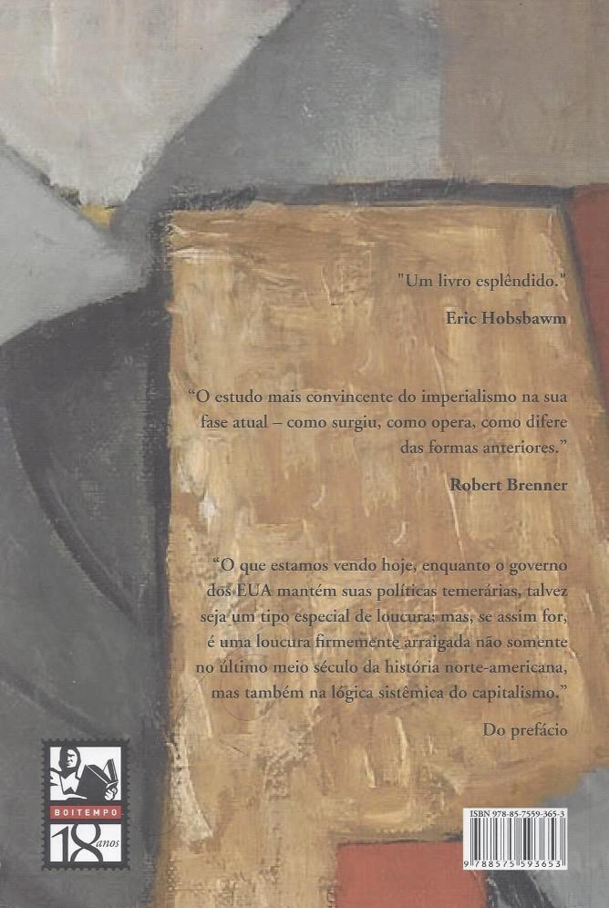 Descrito pelo historiador Robert Brenner como ‘o estudo mais convincente do imperialismo na sua fase atual – como surgiu, como opera, como difere das formas anteriores’, o livro investiga o novo imperialismo contra o fundo contrastante de suas formas anteriores, como a Roma antiga, a Europa medieval, o mundo árabe maometano, as conquistas espanholas e o império comercial holandês. Na obra, Wood analisa o nascimento de um imperialismo capitalista na dominação inglesa da Irlanda e acompanha o seu desenvolvimento através do Império Britânico na América e na Índia. A tese principal da autora é a de que a natureza específica do imperialismo norte-americano – e, na prática, do império capitalista – é operar o máximo possível por meio dos imperativos econômicos, e não do domínio colonial direto. Assim, afirma sem hesitar que ‘os Estados Unidos foram o primeiro império verdadeiramente capitalista do mundo, e ainda não foram substituídos’. Mesmo depois das invasões do Iraque e do Afeganistão, Wood sustenta a tese ousada de que os Estados Unidos teriam preferido evitar iniciativas coloniais, garantindo sua dominação por meio de imperativos econômicos. Sem negar o extremismo temerário da era Bush – algo que, inclusive, avalia como sendo a causa provável da sua própria derrota -, a autora insiste na ausência de uma ruptura com essa doutrina durante o governo Obama a fim de ressaltar a essência da política externa norte-americana do pós-guerra, pautada por uma grandiosa visão imperial. A partir da premissa de que, durante o último meio século, a supremacia global foi o objetivo dos Estados Unidos, Wood retraça o projeto norte-americano de hegemonia econômica global, apoiado por uma poderosa supremacia militar, desde o estabelecimento do sistema de Bretton Woods e a afirmação de sua blindagem militar com as bombas atômicas de Hiroshima e Nagasaki até as polêmicas da globalização financeira com a dissolução desse acordo. Esta edição conta ainda com um posfácio, inédito na edição original, em que a autora responde às principais críticas feitas a seu livro, além de um prefácio escrito especialmente para edição brasileira, em que a autora reflete sobre o legado de sua obra e atualiza a discussão proposta pelo livro comentando fenômenos atuais como as políticas-econômicas adotadas pelos governos Lula e Dilma, as operações espionagem em massa que vieram à tona nos EUA de Obama e o crescente protagonismo da China na nova ordem mundial. (extraído de Google Books)