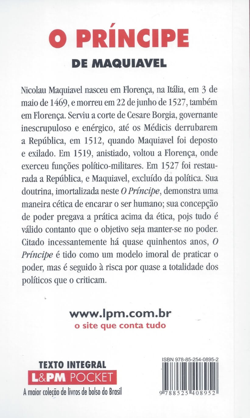 A Coleção L&PM Pocket lança uma nova tradução de O Príncipe, de Nicolau Maquiavel, realizada por Antonio Caruccio-Caporale diretamente do original italiano do século XVI. Esta nova versão chega com quase duzentas notas e algumas retificações em relação às traduções existentes no mercado.