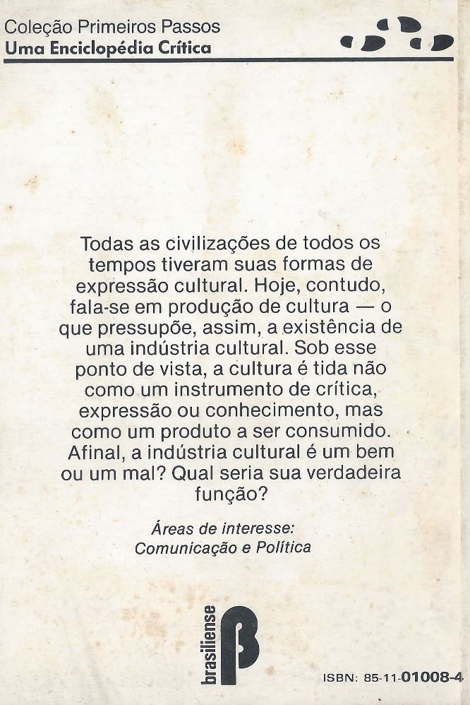 Todas as civilizações de todos os tempos tiveram suas formas de expressão cultural. Hoje, contudo, fala-se em produção de cultura – o que pressupõe, assim, a existência de uma indústria cultural. Sob esse ponto de vista, a cultura é tida não como um instrumento de crítica, expressão ou conhecimento, mas como um produto a ser consumido. Afinal, a indústria cultural é um bem ou um mal? Qual seria sua verdadeira função? (extraído de Amazon)