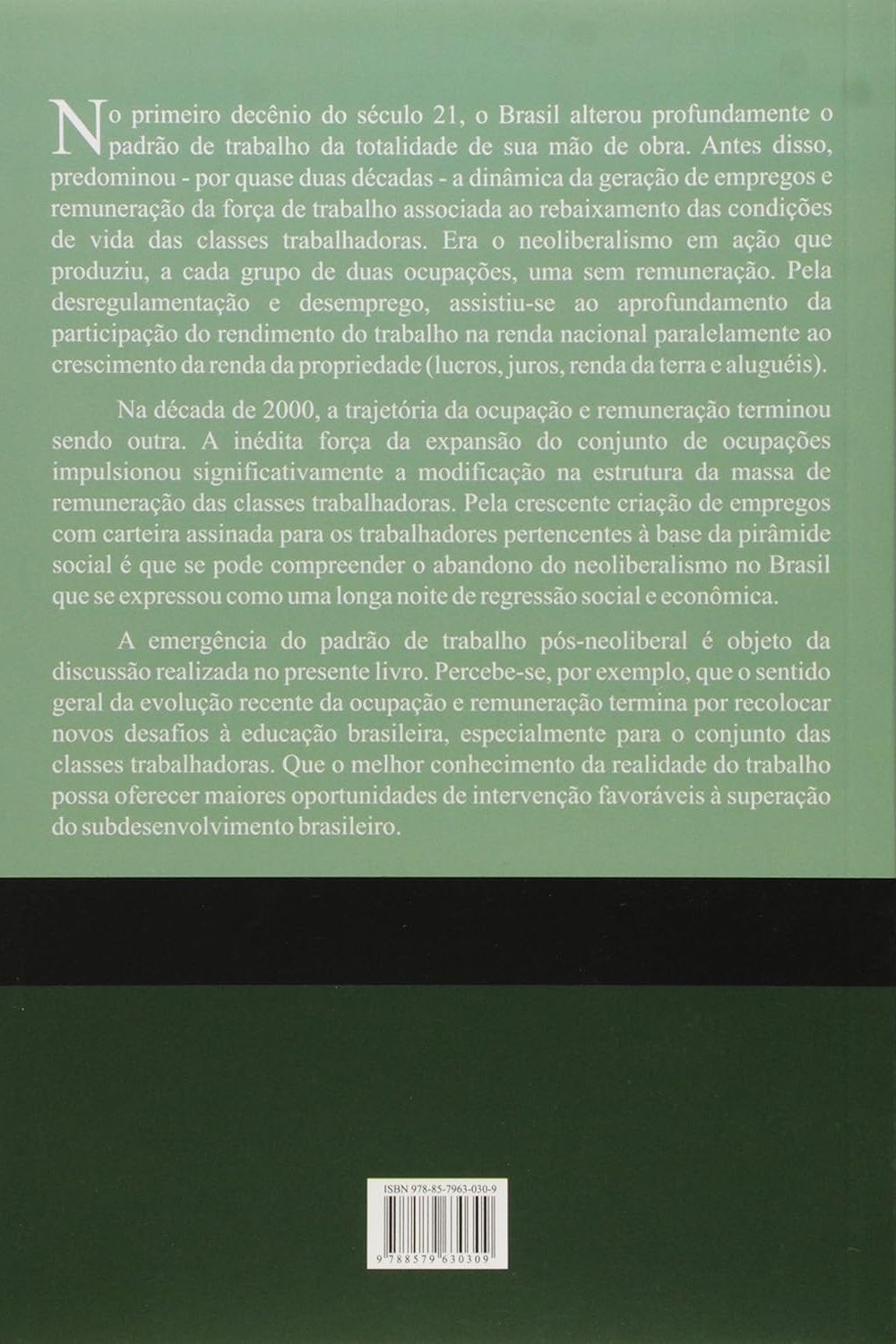 No primeiro decênio do século 21, o Brasil alterou profundamente o padrão de trabalho da totalidade de sua mãe de obra. Antes disso, predominou – por quase duas décadas – a dinâmica da geração de empregos e remuneração da força de trabalho associada ao rebaixamento das condições de vida das classes trabalhadoras. Era o neoliberalismo em ação que produziu, a cada grupo de duas ocupações, uma sem remuneração. Pela desregulamentação e desemprego, assistiu-se ao aprofundamento da participação do rendimento do trabalho na renda nacional paralelamente ao crescimento da renda da propriedade (lucros, renda da terra e aluguéis). na década de 2000, a trajetória da ocupação e remuneração terminou sendo outra. A inédita força de expansão do conjunto de ocupações impulsionou significativamente a modificação na estrutura da massa de remuneração das classes trabalhadoras. Pela crescente criação de empregos com carteira assinada para os trabalhadores pertencentes à base da pirâmide social é que se pode compreender o abandono do neoliberalismo no Brasil que se expressou como uma longa noite de regressão social econômica. A emergência do padrão de trabalho pós-neoliberal é objeto da discussão realizada no presente livre. Percebe-se, por exemplo, que o sentido geral da evolução recente da ocupação e remuneração termina por recolocar novos desafios à educação brasileira, especialmente para o conjunto do trabalho possa oferecer maiores oportunidades de intervenção favoráveis à superação do subdesenvolvimento brasileiro. (extraído de Amazon)