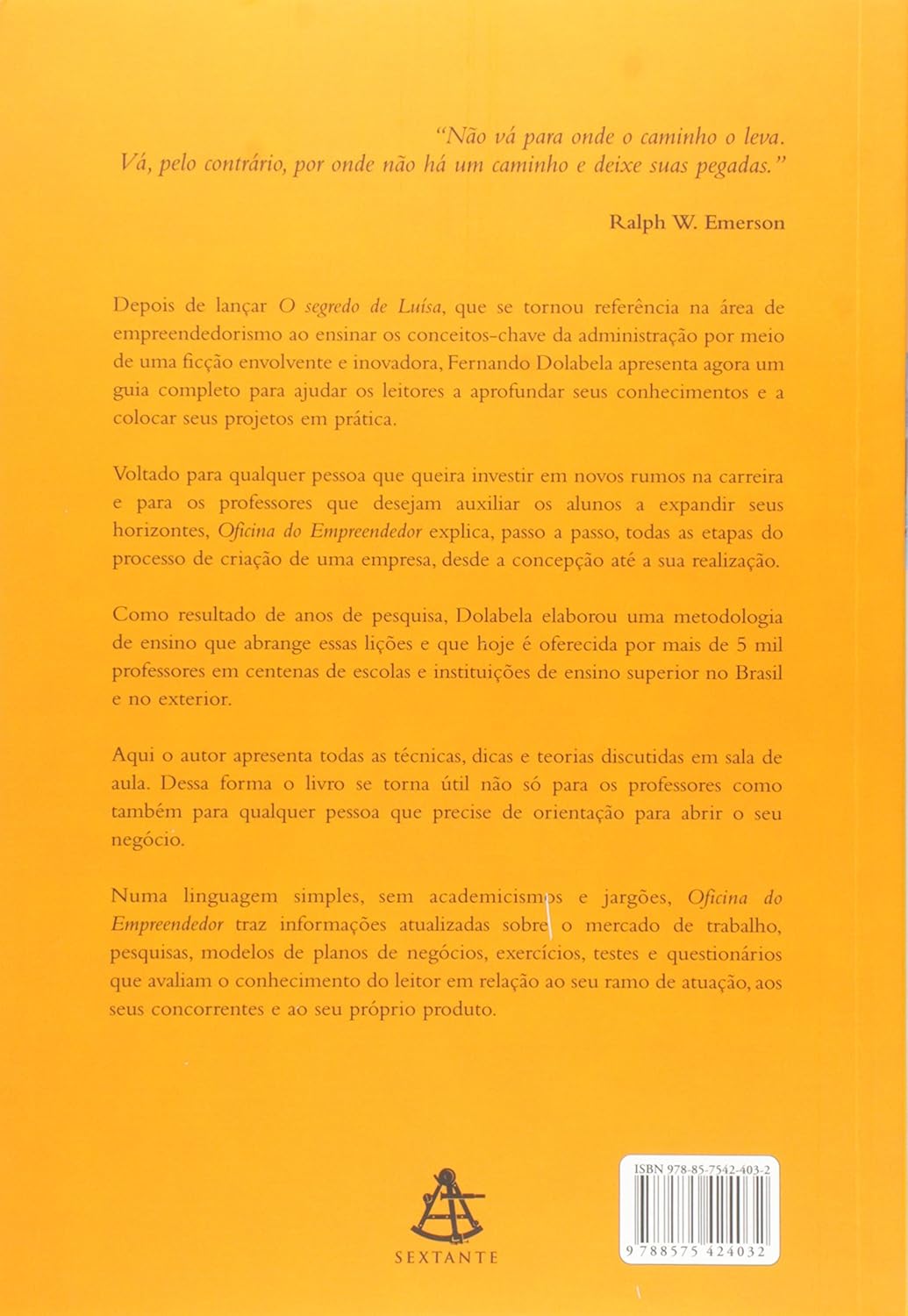 Neste livro, o autor oferece todas as informações, técnicas, dicas e teorias discutidas em sala de aula. Dessa forma, ele se torna útil não só para os professores como também para qualquer pessoa que precise de orientação para abrir o seu negócio. Com uma linguagem simples, sem academicismos e jargões, Oficina do empreendedor traz informações atualizadas sobre o mercado de trabalho, pesquisas, modelos de planos de negócios, exercícios, testes e questionários que avaliam o conhecimento do leitor em relação ao seu ramo de atuação, aos seus concorrentes e ao seu próprio produto.