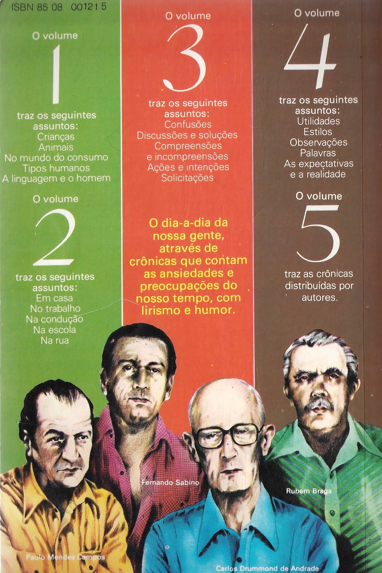 Um cronista pode transformar as confusões desentendimentos e pequenas complicações que fazem parte do dia-a-dia de qualquer pessoa em boas histórias. Neste livro, Paulo Mendes Campos, Rubem Braga, Carlos Drummond de Andrade e Fernando Sabino retratam o cotidiano de um jeito muito especial. (extraído de Amazon)