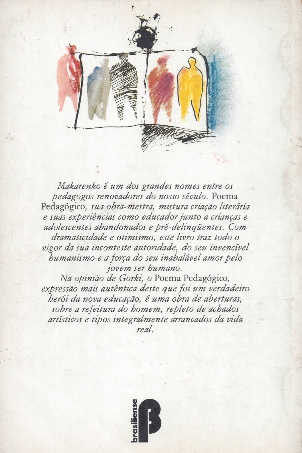 Makarenko é um dos grandes nomes entre os pedagogos-renovadores do nosso século. Poema Pedagógico, sua obra-mestra, mistura criação literária e suas experiências como educador junto a crianças e adolescentes abandonados e pré-delinqüentes. Com dramaticidade e otimismo, este livro traz todo o vigor da sua inconteste autoridade, do seu invencível humanismo e a força do seu inabalável amor pelo jovem ser humano.